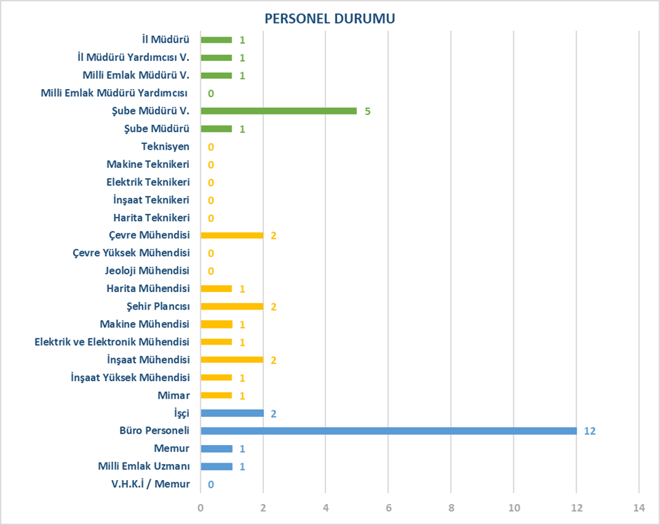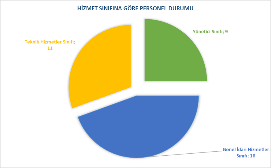 Müdürlüğümüz 9'i Yönetici Sınıfında olmak üzere toplam 36 personeliyle faaliyetlerini sürdürmekte olup personellerimizin unvanlarına göre dağılımı aşağıdaki şekildedir.